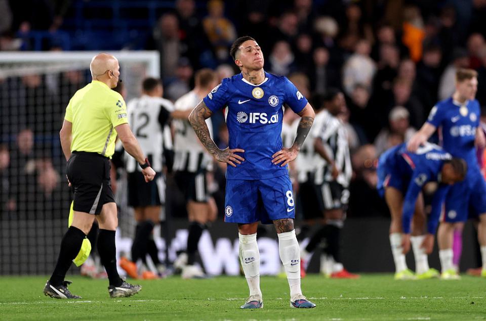 第16分钟,恩佐弧顶爆射,队友帕尔默站位不佳将球挡出。